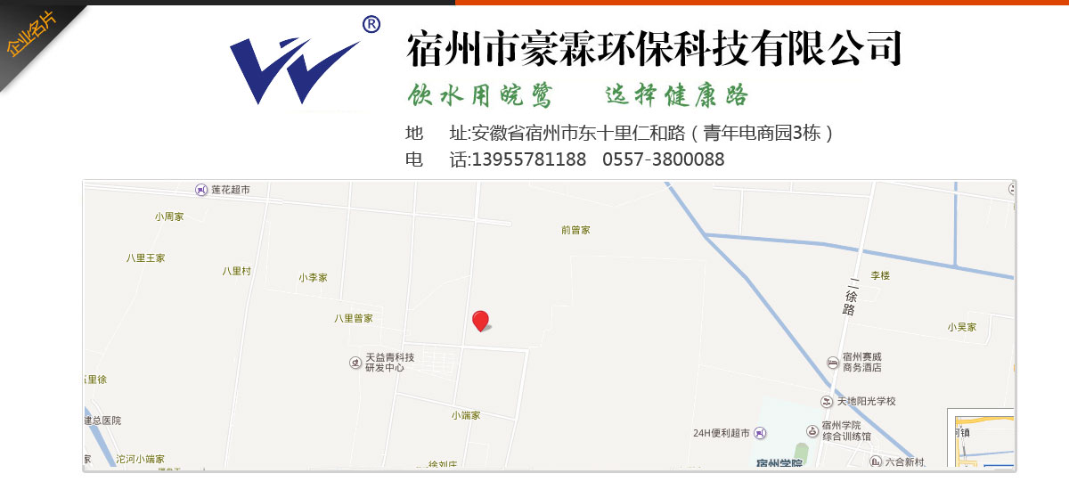 宿州市豪霖環保科技有限公司專業致力于水處理產品和系統水處理工程,集產品的開發與銷售、工程配套與安裝、技術咨詢與服務于一體的新型環保企業。主營產品:家用、商用純水機系列,能量活水機系列,家用、中央用凈水器系列,管線機,泵、膜系列,各種零配件、水處理耗材等配套產品系列,循環冷卻水處理系統,鍋爐軟化水處理系統,海水、苦咸水淡化、污水處理系統,軟化及過濾裝備,紫外線及臭氧消毒設備等全部產品。